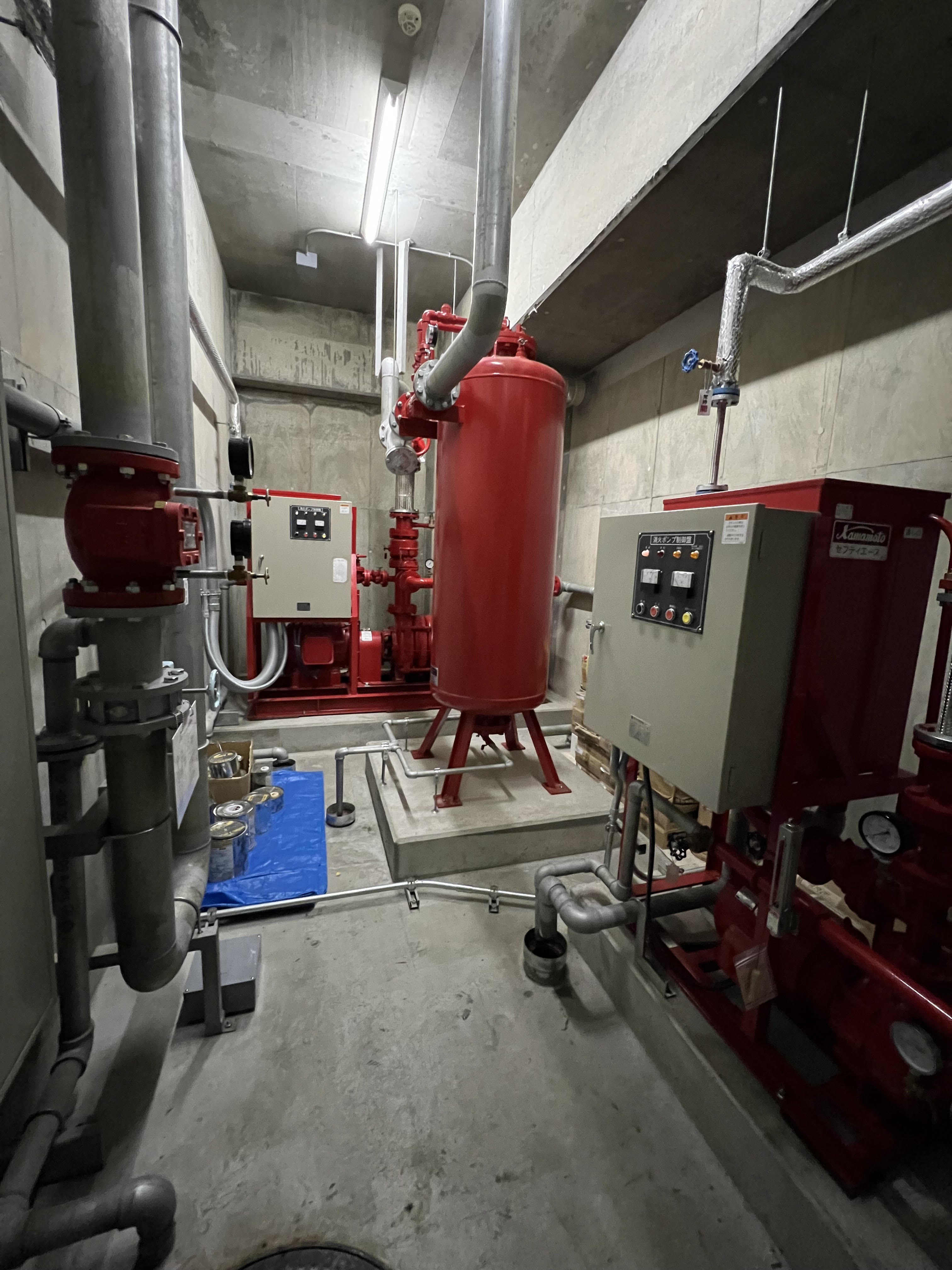 ポンプ室内と感知器遠隔点検時の写真です。